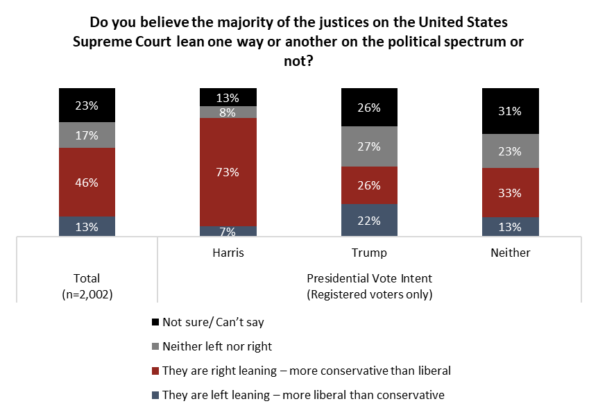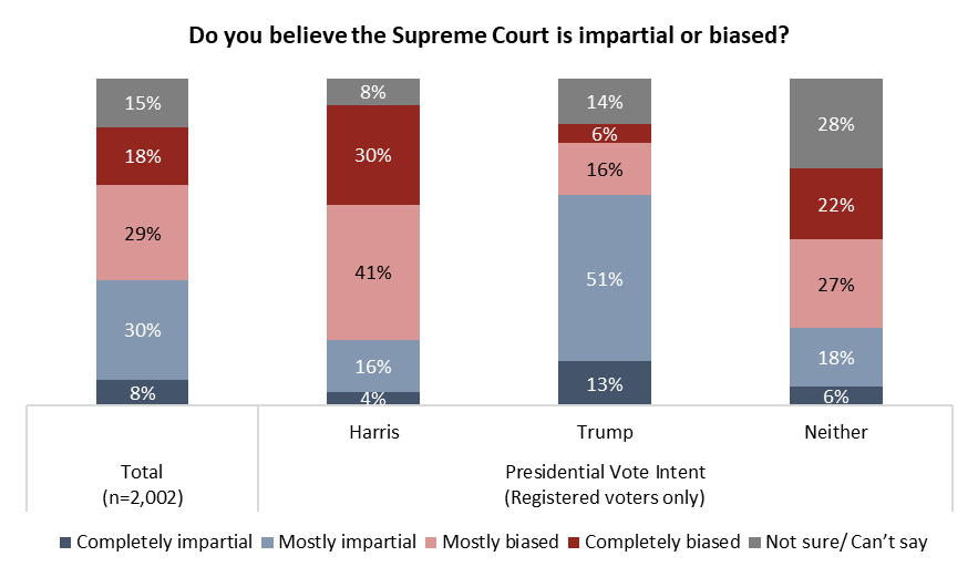 Trump and Harris supporters disagree on assessments of political leanings, impartiality of Supreme Court